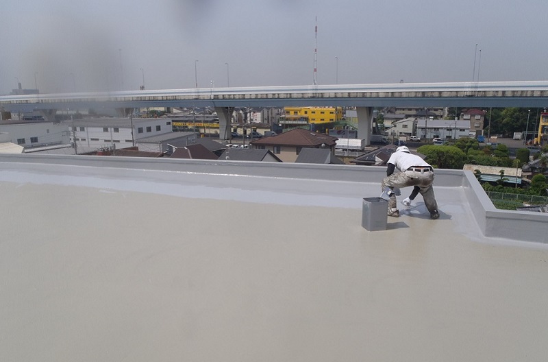 ウレタン塗膜防水工事とは、液状のウレタン樹脂を下地に塗布して硬化させ、所定の厚さの防水層を形成させる工法です。 -